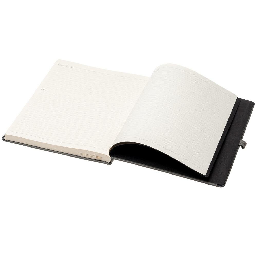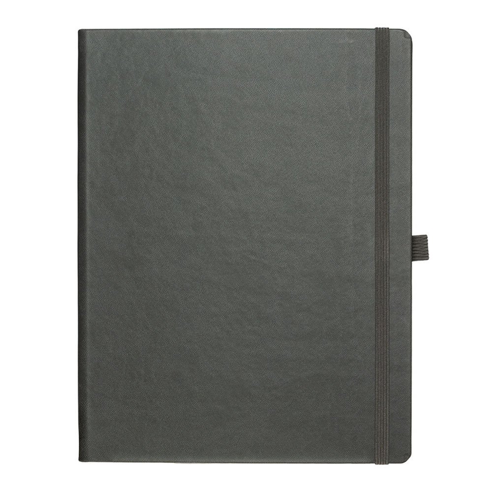Блокнот PRINT А4; внутр.формат 19х25 см; 192 страниц, кремовая бумага 80 г; сертифицирована FSC; Печать в 1+1 цвет, все страницы пронумерованы; Шитый блок; Форцазы из черной дизайнерской бумаги 140 гр FSC; Карман из черной дизайнерской бумаги; Резинка 8 мм в тон обложки; Петля для ручки в тон обложки; Ляссе в тон обложки; Гибкая обложка из высококачественного итальянского кожзама; Обладает свойствами термоэффекта при слепом тиснении
