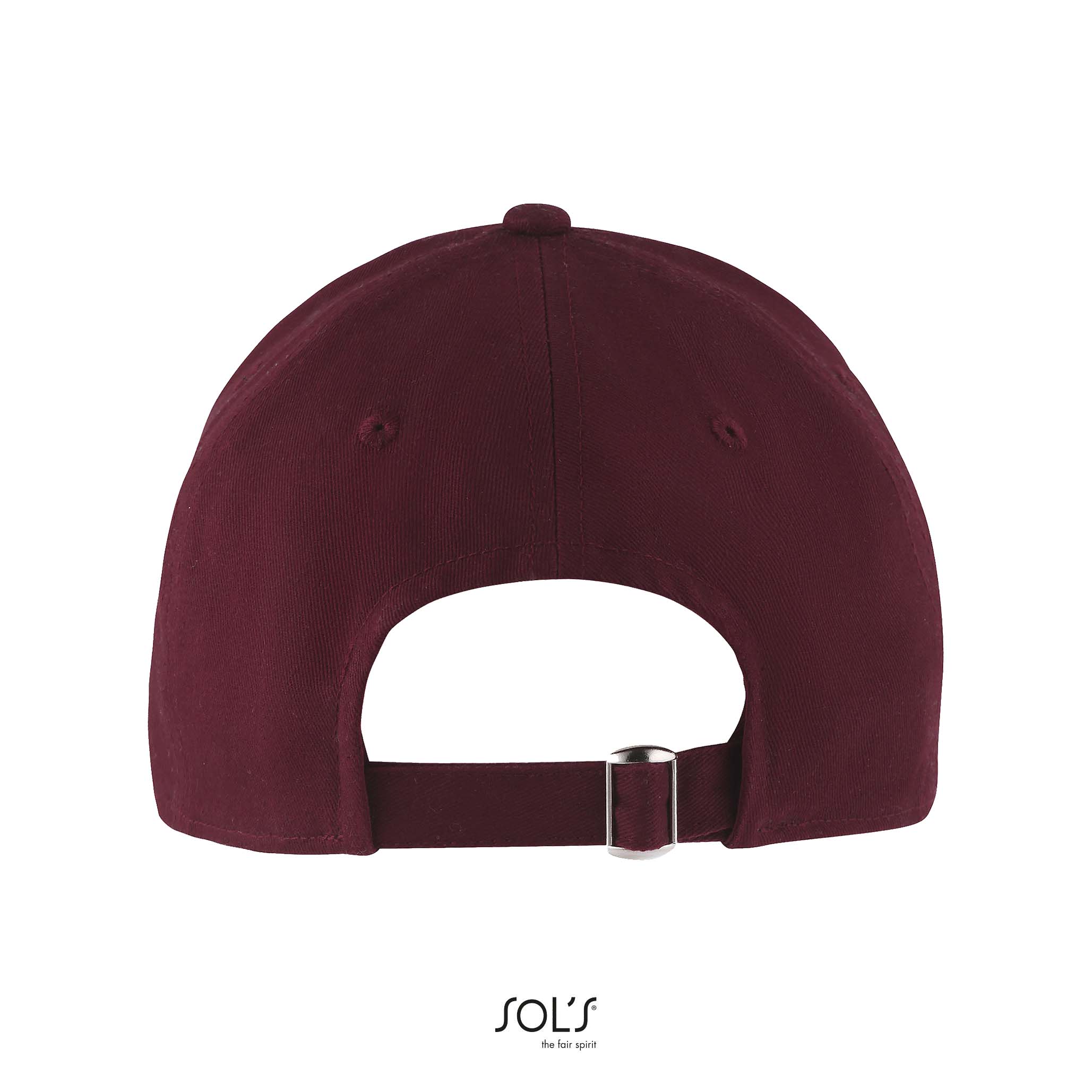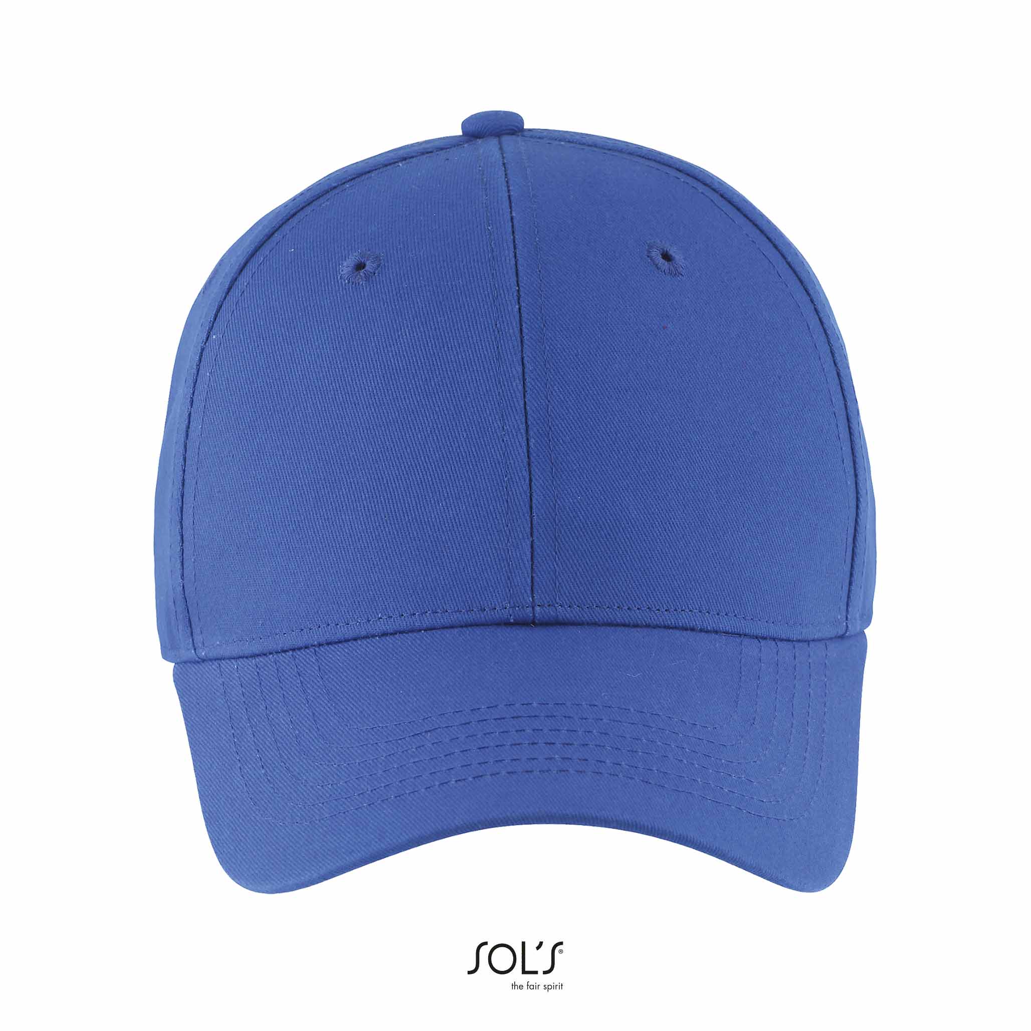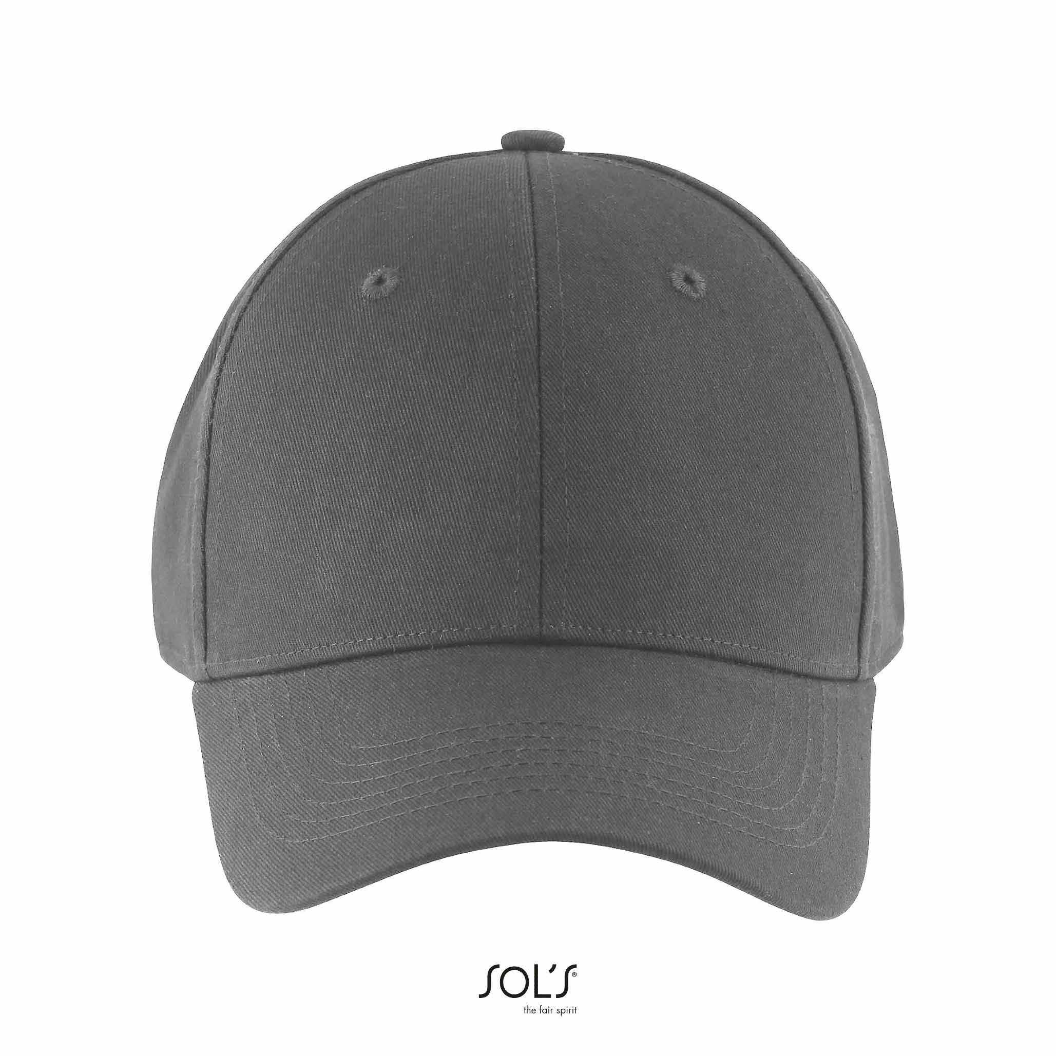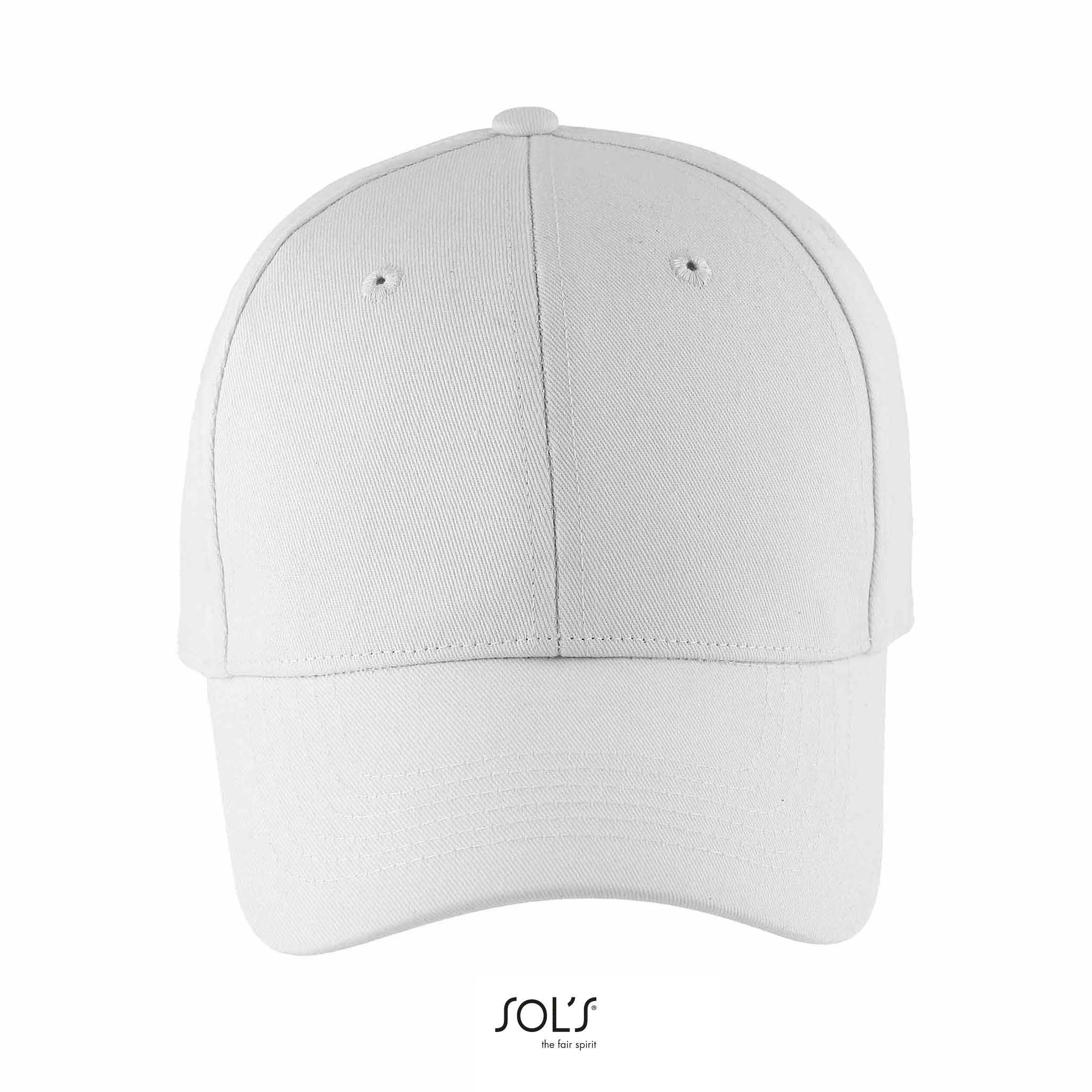 Форма с 6 клиньями Усиленные и уплотненные передние клинья Изогнутый жесткий козырек Подбивка из хлопкового твила вокруг головы для комфортной носки 6 отверстий с вышивкой для вентиляции Современная металлическая застежка сзади Твил - 100% хлопок - 285 г/м²