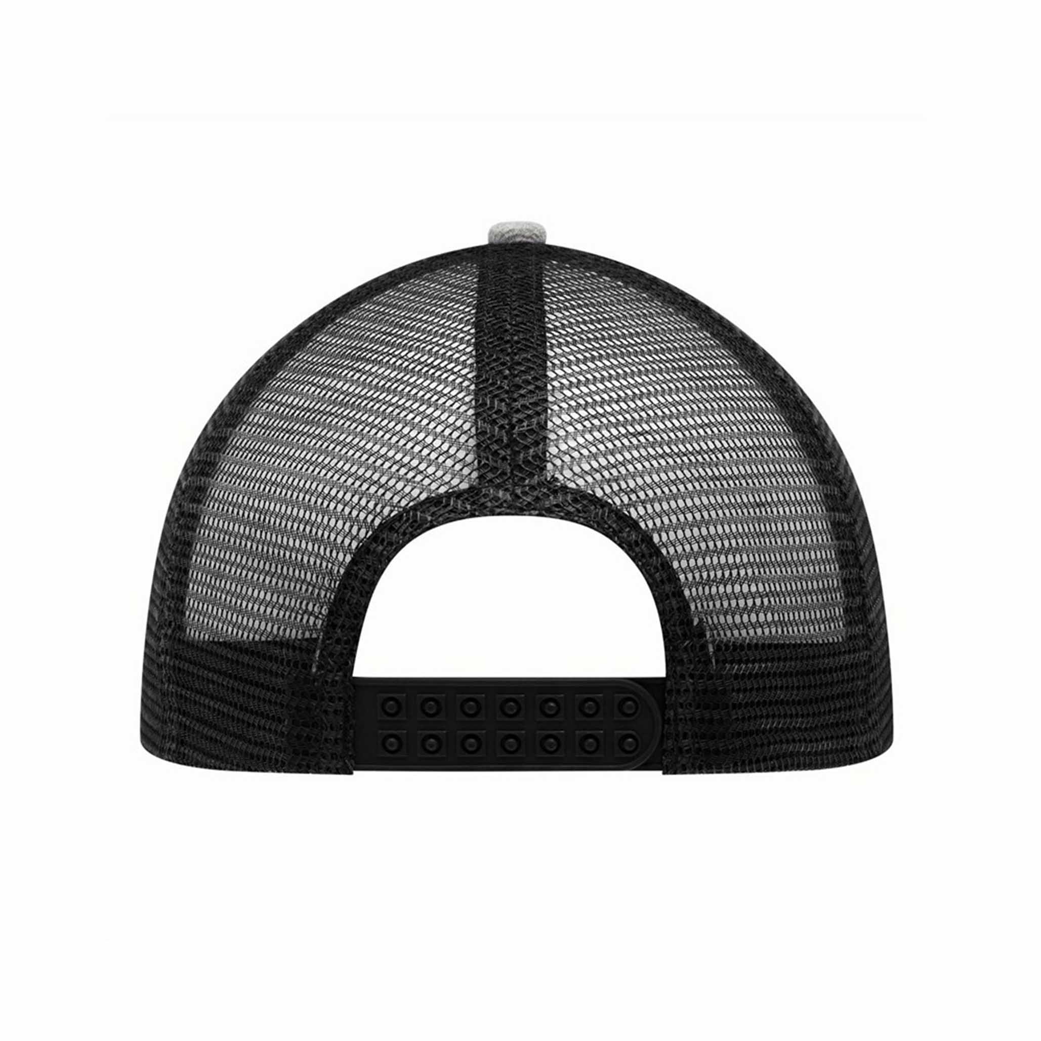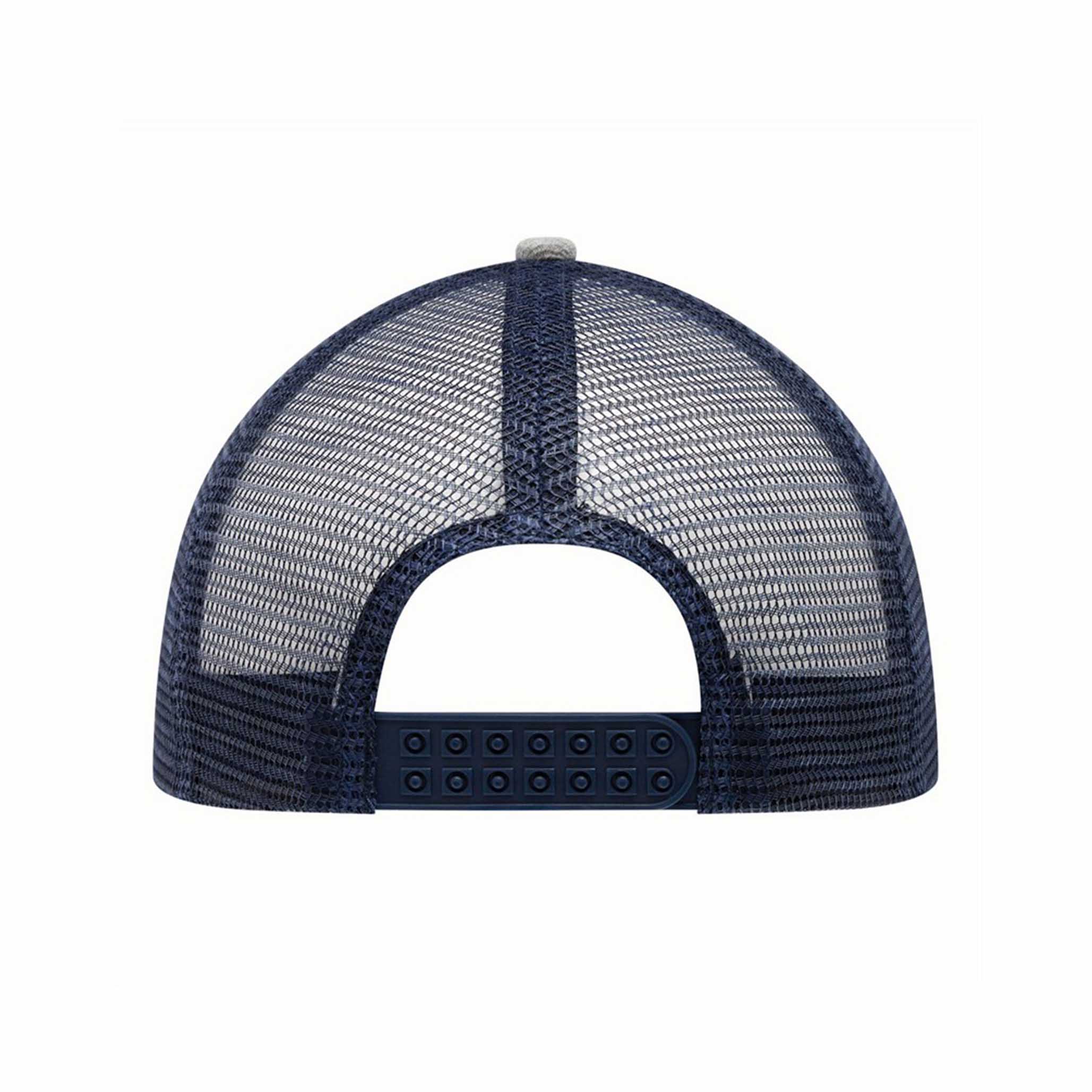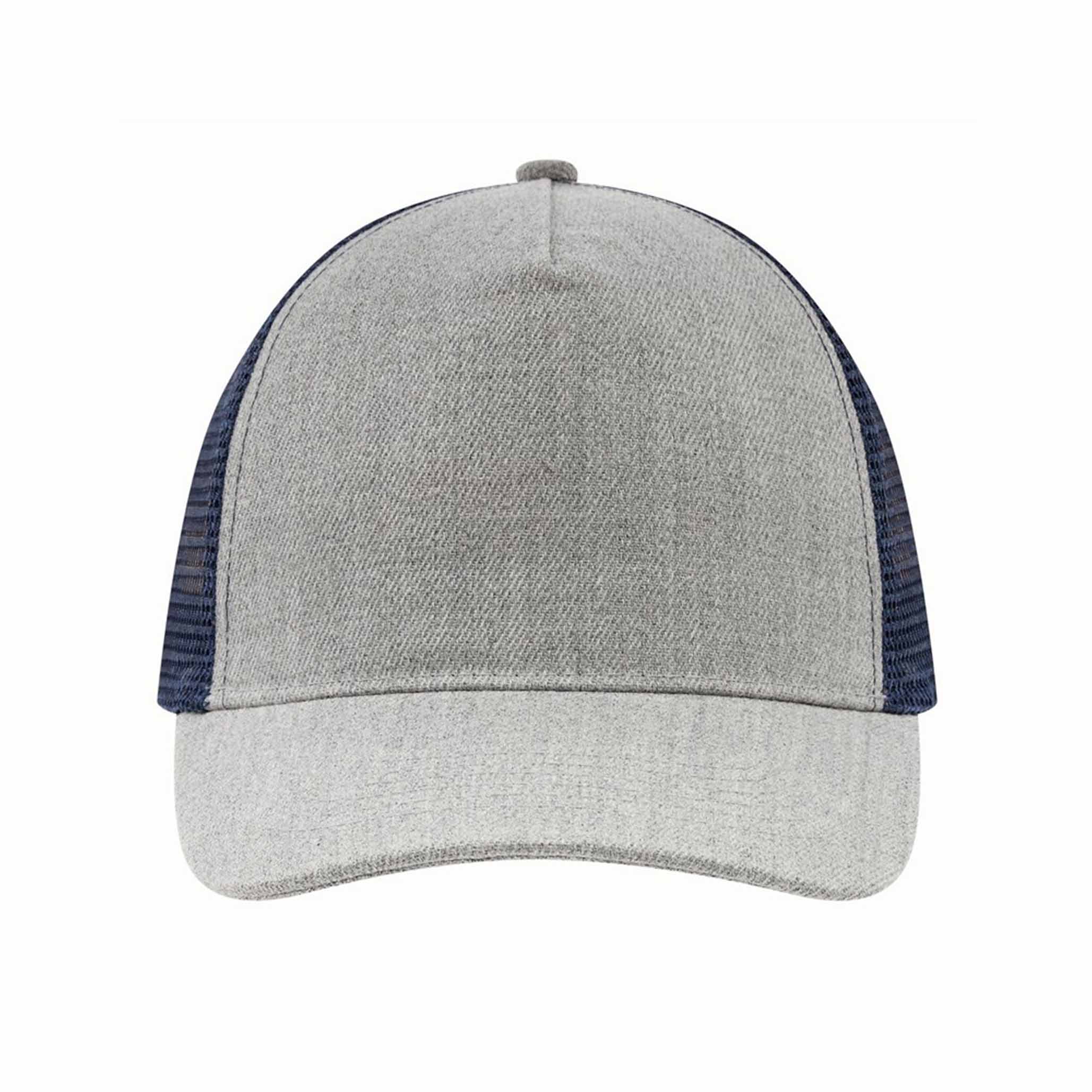 5-panel baseball cap CASUAL FIT, 2-coloured: reinforced front segment, other segments made of mesh, size-adjustable, double-row plastic fastener at the back