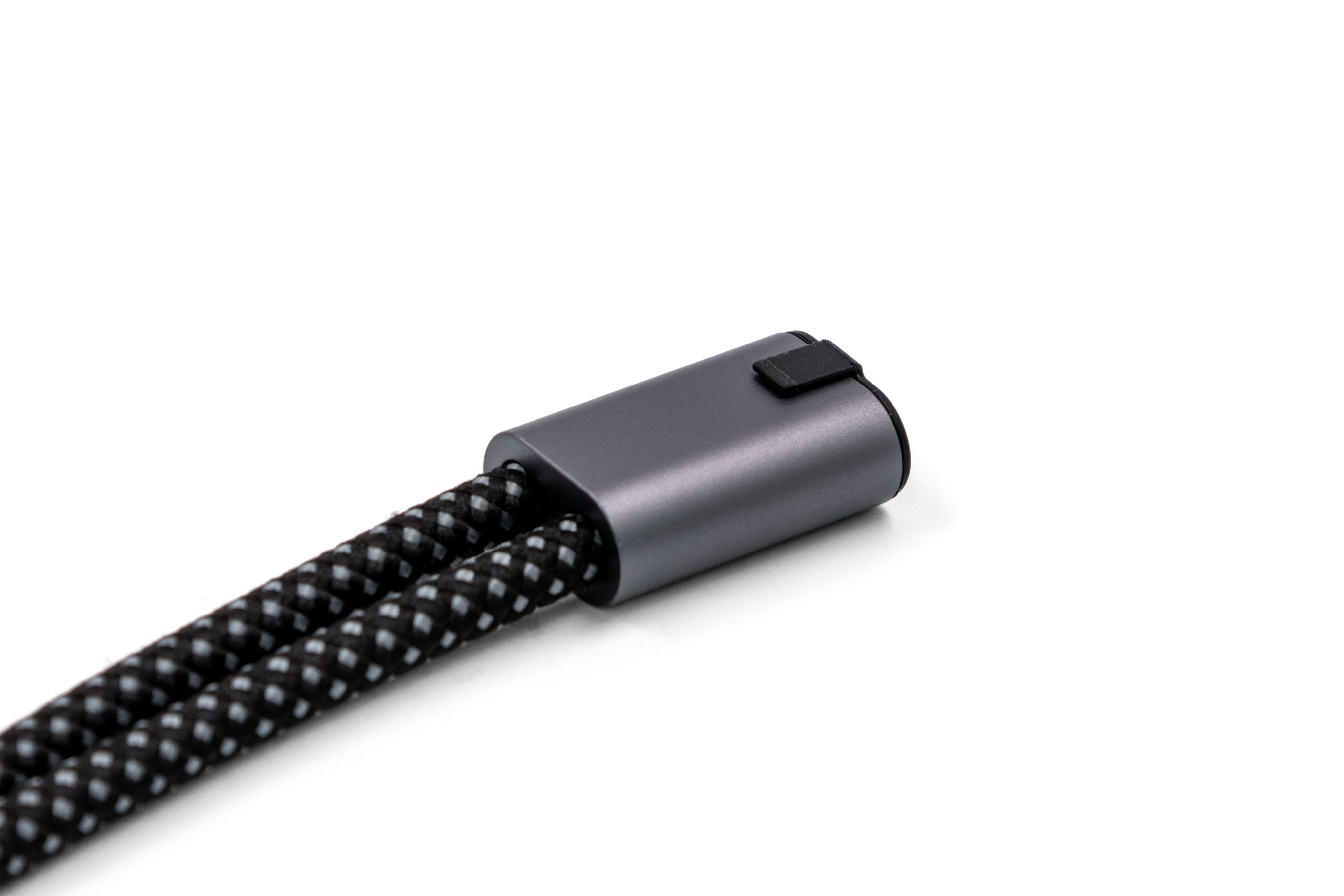 Экологичный браслет-кабель выполнен из переработанных PET-бутылок, оснащён алюминиевым корпусом и двумя разъёмами USB Type-C. Поддерживает быструю зарядку мощностью 60 Вт и передачу данных по стандарту USB 2.0. Совместим с большинством чехлов для телефонов, выдерживает нагрузку до 8 кг. Длина кабеля 28 см в собранном виде и 44 см в открытом, толщина 0,7 см. Сертифицирован по стандарту RCS (Recycled Claim Standard).